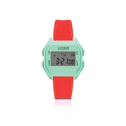 Orologio Cassa taglia medium soft touch verde con cinturino arancio fluo. Referenza: IAM-KIT547 Descrizione Orologio composto da cassa soft touch verde con cinturino arancio fluo Funzioni principali Suoneria, segnale orario ogni ora, cronometro, sistema 12/24 ore Calendario Una volta impostato, il calendario indica il mese, il giorno della settimana, l’ora, i minuti e i secondi Durata batteria La batteria alimenta l’orologio per ca. 2 anni Luminosità La retro illuminazione di questo orologio impiega una luce elettroilluminescente (el), che perde il suo potere illuminante dopo un periodo d’uso molto prolungato. La luminosità generata da questa funzione è difficile da vedere sotto la luce solare diretta. Temperatura Intervallo di temperatura per un normale funzionamento: 10° c ~ 40°c Cassa La cassa è in policarbonato effetto metallo o trasparente; vetro della cassa in acrilico Chiusura La chiusura è a fibbia in acciaio e può essere regolata facilmente in modo da adattare la grandezza dell’orologio a qualsiasi polso Impermeabilità L’orologio ha un’impermeabilità di 5 ATM, pertanto si consiglia di evitare l’utilizzo dei pulsanti sott’acqua, in immersione o mentre si nuota. In caso di contatto con una quantità maggiore d’acqua o in caso di creazione di condensa all’interno, è consigliato un controllo immediato dell’orologio, in quanto l’acqua può corrodere le parti elettroniche presenti all’interno della cassa. DETTAGLI TECNICI Precisione ± 30 secondi al mese a temperatura normale (25° C) Suoneria/segnale orario Suoneria quotidiana, segnale orario ogni ora Calendario automatico Sì (indicazione mese, giorno della settimana, ora, minuti, secondi) Cinturino Cinturino in silicone Durata della batteria 2 Anni Tipo di batteria Digitale, J8540 Cassa Cassa in policarbonato effetto metallo o trasparente Digitale / Analogico Digitale Cronometro Sì Impermeabile 5 ATM Dimensioni cassa: 37 x 40 mm; cinturino: 75 -112 mm;