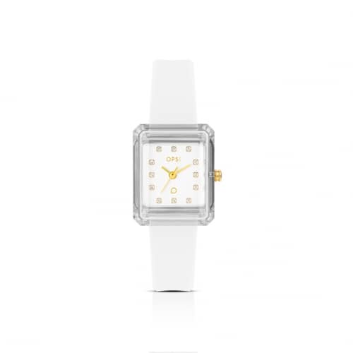 Orologio Ops Objects Rare OPSPW-953 Orologio da donna Ops Objects della collezione Rare. Il movimento dell’orologio è al quarzo. La cassa è realizzata in plastica trasparente, dimensioni 27 x 22 mm. Il cinturino è realizzato in silicone di colore bianco. Il quadrante è di colore bianco con pietre. La resistenza all’acqua è di 5 ATM / 50 metri. Referenza: OPSPW-953 Articolo spedito con garanzia ed astuccio originale Ops Objects