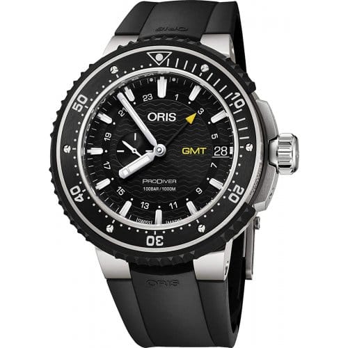 Orologio ORIS Uomo PRODIVER GMT 01 748 7748 7154-07 4 26 74TEB Il più specialistico tra gli orologi subacquei di Oris è stato progettato con l’aiuto di sub professionisti. Oltre alla sua impermeabilità fino a 100 atmosfere (1.000 m), dispone del sistema brevettato di bloccaggio della lunetta RSS di Oris, che assicura la lunetta in posizione durante un’immersione. Quest’ultima versione è dotata di leggerissima cassa in titanio, valvola dell’elio automatica e secondo fuso orario. CASSA Oris ProDiver, 49.00 mm, 1.929 inches, Titanio MATERIALE Cassa in titanio in più parti, scala dei minuti in gomma e ceramica sull’anello superiore MISURA 49.00 mm, 1.929 inches VETRO zaffiro, ricurvo sui due lati, trattamento antiriflesso sulla parte interna FONDELLO Titanio, avvitao, inciso CORONE E PULSANTI Corona di sicurezza in acciaio inossidabile avvitata, rivestita in PVD grigio IMPERMEABILITÀ 100 bar ANSE 26 mm MOVIMENTO Carica automatica GMT, piccoli secondi, grande datario sviluppato da Oris REFERENZA Oris 748, base SW 220-1 DIMENSIONI Ø 32.20 mm, 14 1/4”’ FUNZIONI Lancette centrali per ore, minuti e 24 ore, secondi decentrati al 9, finestra della data sovradimensionata, data istantanea, corrrettore della data e delle 24 ore, congegno di regolazione fine e arresto dei secondi CARICA Carica automatica RISERVA DI CARICA 38 h ALTERNANZE 28’800 A/h, 4 Hz RUBINI 28 QUADRANTE Nero MATERIALE Quadrante nero MATERIALI LUMINESCENTI Lancette e indici con Superluminova BG W9 CINTURINO/BRACCIALE Caucciù MATERIALE Cinturino in caucciù, nero, fibbia deployante con sicurezza, allungabile, in titanio