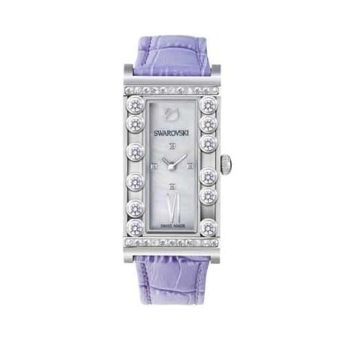Orologio Swarovski da Donna della Collezione Lovely Crystals Square in acciaio, vetro minerale, display analogico, cassa 23x43mm, cinturino in pelle lilla, meccanismo al quarzo, impermeabilità fino 3atm. La Referenza è : 5096684