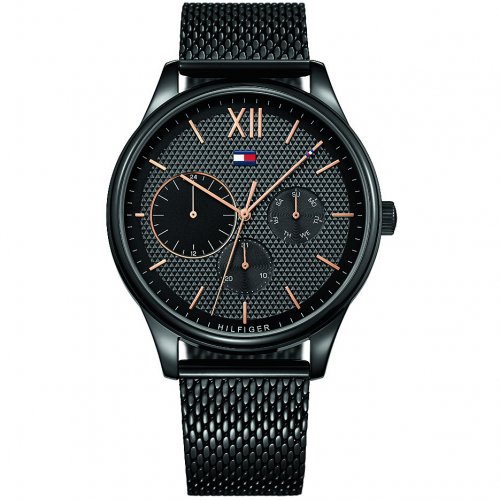 Orologio Multifunzione Da Uomo Di Tommy Hilfiger Della Collezione Damon. Modello Realizzato In Acciaio. La Cassa Ha Dimensione Di 44 Mm Con Finitura Nero, Quadrante Di Colore Nero E Vetro Minerale. Orologio Con Bracciale In Acciaio Di Colore Nero. La Resistenza All’Acqua È Di 5 Atm. La Referenza È 1791420 Questo multifunzione verrà spedito con Scatola Originale Tommy Hilfiger