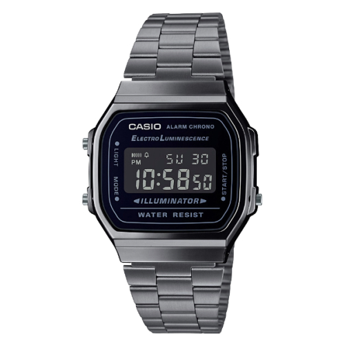 Orologio Unisex Casio Vintage A168WEGG-1BEF Orologio unisex Casio della collezione Vintage. Il movimento dell’orologio è al quarzo. La cassa dell’orologio è in resina nera, dimensioni 38 x 36 mm. Il bracciale dell’orologio è in acciaio IP nero. Il quadrante è di colore nero digitale. La resistenza all’acqua è di 1 bar / 10 metri. Referenza: A168WEGG-1BEF Funzioni: Calendario, Cronometro, Promemoria sonoro / Segnale orario, Luce Articolo spedito con astuccio originale e garanzia ufficiale Casio