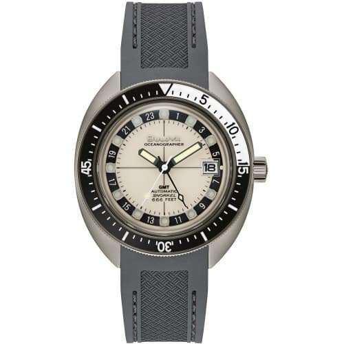 Orologio Uomo Bulova Oceanographer GMT 98B407 Orologio Bulova da uomo della collezione Oceanographer. Il movimento dell’orologio è meccanico a carica automatica con funzioni datario e GMT. La cassa è in acciaio, diametro 41 mm. Il cinturino è in silicone di colore grigio. Vetro zaffiro. Il quadrante è di colore crema. La resistenza all’acqua è di 20 atm / 200 metri. Referenza : 98B407 Articolo spedito con astuccio originale Bulova