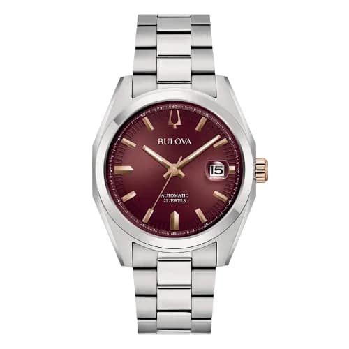 Orologio Uomo Bulova Surveyor 98B422 Orologio da uomo Bulova della collezione Surveyor. Il movimento dell’orologio è meccanico a carica automatica con funzione datario. La cassa è in acciaio, diametro 39 mm. Il bracciale è in acciaio. Il quadrante è di colore bordeaux. Vetro zaffiro. La resistenza all’acqua è di 3 bar / 30 metri. Referenza: 98B422 Articolo spedito con garanzia ufficiale 5 anni ed astuccio originale Bulova Ll’orologio da uomo Bulova della collezione Surveyor rappresenta la combinazione perfetta tra raffinatezza e meccanica di precisione. Con un movimento meccanico a carica automatica e la pratica funzione datario, questo orologio è pensato per chi apprezza l’eleganza e l’affidabilità. La cassa in acciaio da 39 mm, unita al bracciale in acciaio coordinato, conferisce robustezza e stile, mentre il quadrante bordeaux aggiunge un tocco di personalità e originalità. Protetto da vetro zaffiro antigraffio, questo orologio è costruito per durare, mantenendo intatta la sua brillantezza. La resistenza all’acqua di 3 bar / 30 metri lo rende adatto a un uso quotidiano senza compromessi. Ideale da abbinare a un abito elegante o per impreziosire un look casual, il Bulova Surveyor esalta ogni occasione con la sua tonalità esclusiva e il fascino senza tempo. Cosa significa Movimento meccanico a carica automatica? Spesso definito come a carica automatica, un orologio automatico è un orologio meccanico che sfrutta l’energia cinetica prodotta dal movimento naturale del polso di chi lo indossa. La molla viene automaticamente caricata dai movimenti naturali del polso di chi lo indossa. La riserva di carica in genere varia da 36 a 80 ore, quindi se non si indossa questo tipo di orologio per diversi giorni potrebbe fermarsi: sarà sufficiente metterlo al polso e l’orologio tornerà a funzionare. Uno dei vantaggi degli orologi meccanici è che evitando l’uso di batterie utilizzate per i movimenti al quarzo, è possibile proteggere l’ambiente e, con una manutenzione adeguata, spesso un orologio meccanico durerà per decenni.