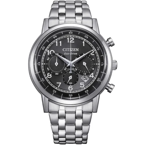 Orologio Uomo Citizen OF Crono Classic CA4630-53E Orologio da uomo Citizen della collezione OF Crono Classic. Il movimento dell’orologio è al quarzo Eco Drive (carica solare) con funzioni cronografo, datario e indicazione delle 24h giornaliere. La cassa è in acciaio, diametro 42 mm. Il bracciale è in acciaio. Il quadrante è di colore nero. La resistenza all’acqua è di 10 bar / 100 metri. Referenza: CA4630-53E Articolo spedito con garanzia ufficiale 5 anni e astuccio Citizen Cos’è la tecnologia Eco Drive? Una delle grandi sfide di Citizen era sviluppare una tecnologia che garantisse il funzionamento costante dell’orologio, ovunque nel mondo. Nel 1976, il brand ha rivoluzionato l’orologeria inventando il primo orologio analogico al quarzo alimentato a luce. Questa innovativa tecnologia, oggi conosciuta come Eco-Drive, utilizza esclusivamente la luce come fonte di energia, eliminando la necessità di sostituire la batteria. Il sistema Eco-Drive è in grado di generare energia da qualsiasi sorgente luminosa: luce artificiale, luce naturale e persino luce fioca, assicurando un funzionamento continuo e sostenibile dell’orologio.