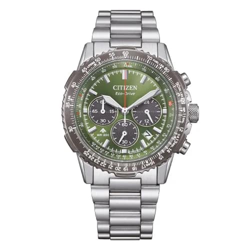 Orologio Uomo Citizen Promaster Navihawk CA4664-60W Orologio Citizen da uomo della collezione Promaster. Il movimento dell’orologio è al quarzo Eco Drive con funzioni datario, cronografo e indicazione delle 24h giornaliere. La cassa è in acciaio, diametro 40 mm. Il bracciale è in acciaio. Il quadrante è di colore verde. Vetro zaffiro. Antimagnetico 4800 A/m. La resistenza all’acqua è di 20 bar / 200 metri. Referenza: CA4664-60W Articolo spedito con astuccio e garanzia Citizen Cos’è la tecnologia Eco Drive? Una delle sfide di Citizen: sviluppare una tecnologia che garantisse il costante funzionamento dell’orologio, in qualsiasi parte al mondo. Nel 1976, hanno inventato il primo orologio analogico al quarzo alimentato a luce che funziona utilizzando esclusivamente la luce come fonte d’energia. Questa tecnologia, ora conosciuta come Eco-Drive, può generare l’energia da qualsiasi sorgente di luce (luce artificiale, luce naturale e persino luce fioca) per continuare a far funzionare gli orologi senza mai sostituire la batteria.