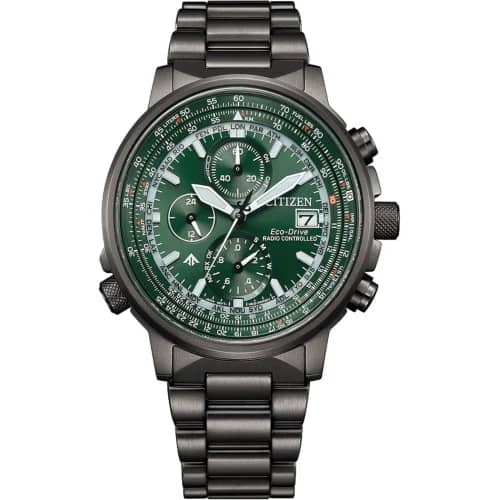 Orologio Uomo Citizen Radiocontrollato Crono Pilot AT8304-57W Orologio Citizen da uomo della collezione Radiocontrollato. Il movimento dell’orologio è al quarzo Eco Drive con funzioni Datario, Cronografo, Indicazione delle 24h giornaliere, World time con orario di 26 città del mondo, Calendario perpetuo. La cassa è in acciaio IP nero, diametro 41 mm. Il bracciale è in acciaio IP nero. Il quadrante è di colore verde. Vetro zaffiro. La resistenza all’acqua è di 20 bar / 200 metri. Referenza: AT8304-57W Articolo spedito con astuccio e garanzia Citizen Cos’è la tecnologia Eco Drive? Una delle sfide di Citizen: sviluppare una tecnologia che garantisse il costante funzionamento dell’orologio, in qualsiasi parte al mondo. Nel 1976, hanno inventato il primo orologio analogico al quarzo alimentato a luce che funziona utilizzando esclusivamente la luce come fonte d’energia. Questa tecnologia, ora conosciuta come Eco-Drive, può generare l’energia da qualsiasi sorgente di luce (luce artificiale, luce naturale e persino luce fioca) per continuare a far funzionare gli orologi senza mai sostituire la batteria. Cos’è la tecnologia RadioControllato? Il sistema di radiocontrollo installato sull’orologio riceve il segnale orario generato da un orologio atomico trasmesso per mezzo di onde radio. La precisione dell’orologio atomico e di ogni orologio Citizen radiocontrollato è assoluta, con una tolleranza di 1 sec ogni 10 milioni di anni. Per evitare interferenze con smartphones e altri apparecchi utilizzati durante le nostre giornate piene, gli orologi Citizen radiocontrollati ricevono i segnali radio a notte fonda per regolare orario e data.