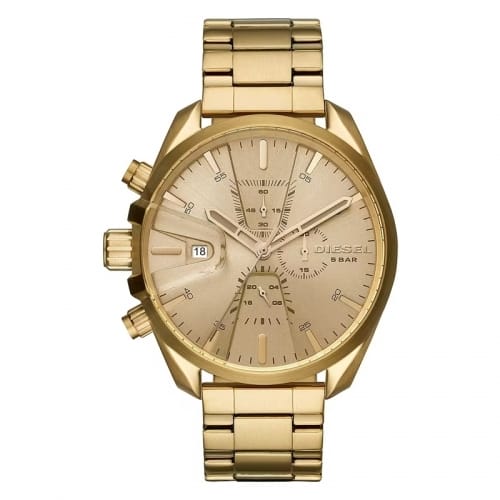 Orologio Uomo Diesel DZ4475 WR: 5 ATM – Cassa: 54 mm – Genere: Uomo – Materiale Cassa: Acciaio Inossidabile trattamento IP oro – Materiale Cinturino: Acciaio Inossidabile trattamento IP oro – Movimento: Quarzo – Funzioni: Cronografo – Data – Vetro: Minerale – Tipo Prodotto: Orologio da polso – Confezione: Scatola Ufficiale