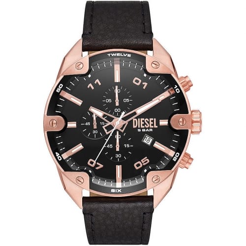 Orologio Uomo Diesel DZ4607 Orologio da uomo Diesel della collezione Spiked. Il movimento dell’orologio è al quarzo con funzioni datario e cronografo. La cassa è in acciaio PVD oro rosa, diametro 50 mm. Il cinturino è in pelle di colore nero. Il quadrante è di colore nero. La resistenza all’acqua è di 5 ATM / 50 metri. Referenza: DZ4607 Articolo spedito con astuccio originale Diesel