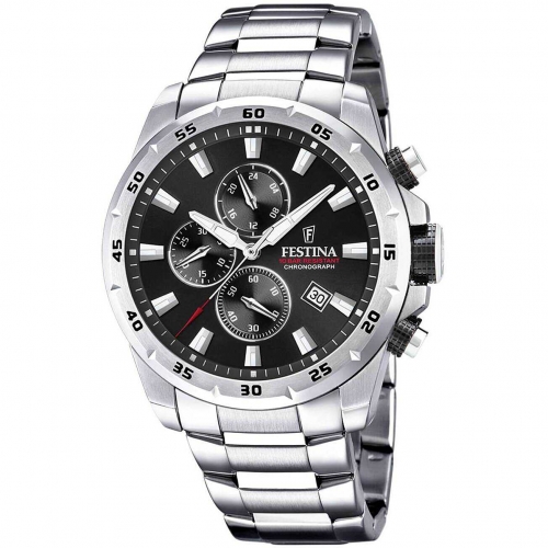 Orologio Uomo Festina Chrono Sport F20463/4 Orologio da uomo Festina della collezione Chrono Sport. Il movimento dell’orologio è al quarzo con funzioni datario, cronografo, indicazione delle 24h giornaliere. La cassa è in acciaio, diametro 45 mm. Il bracciale è in acciaio. Il quadrante è di colore nero. La resistenza all’acqua è di 10 atm / 100 metri. Referenza: F20463/4 Articolo spedito con garanzia ed astuccio originale Festina