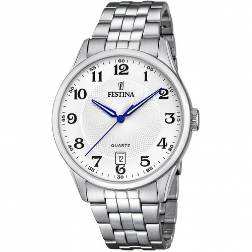 Orologio Uomo Festina Classics F20425/1 Orologio da uomo Festina della collezione Classics. Il movimento dell’orologio è al quarzo con funzione datario. La cassa è in acciaio, diametro 43 mm. Il bracciale è in acciaio. Il quadrante è di colore bianco. La resistenza all’acqua è di 5 atm / 50 metri. Referenza: F20425/1 Articolo spedito con garanzia ed astuccio originale Festina