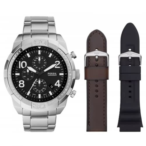 Orologio Uomo Fossil FS5968SET WR: 5 ATM – Cassa: 50 mm – Genere: Uomo – Materiale Cassa: Acciaio Inossidabile – Materiale Cinturino: Acciaio inossidabile – Movimento: Quarzo – Funzioni: Cronografo – Data – Vetro: Minerale – Tipo Prodotto: Orologio da polso – Confezione: Confezione Speciale