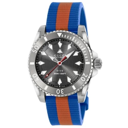 Orologio Uomo Gucci Dive YA136352 Orologio da uomo Gucci della collezione Dive. Il movimento dell’orologio è meccanico a carica automatica Swiss Made. La cassa è in acciaio, diametro 40mm. Il cinturino è in gomma di colore blu ed arancione. Il quadrante è di colore grigio. La resistenza all’acqua è di 30 ATM / 300 metri. Referenza: YA136352 Articolo spedito con astuccio originale Gucci I certificati di garanzia per gli orologi Gucci acquistati dopo il 1° marzo 2022 sono disponibili in esclusiva online. Scarica il certificato all’indirizzo watchwarranty.gucci.com aggiungendo il numero di serie inciso sul retro dell’orologio. Cosa significa Movimento meccanico a carica automatica? Spesso definito come a carica automatica, un orologio automatico è un orologio meccanico che sfrutta l’energia cinetica prodotta dal movimento naturale del polso di chi lo indossa. La molla viene automaticamente caricata dai movimenti naturali del polso di chi lo indossa. La riserva di carica in genere varia da 36 a 80 ore, quindi se non si indossa questo tipo di orologio per diversi giorni potrebbe fermarsi: sarà sufficiente metterlo al polso e l’orologio tornerà a funzionare. Uno dei vantaggi degli orologi meccanici è che evitando l’uso di batterie utilizzate per i movimenti al quarzo, è possibile proteggere l’ambiente e, con una manutenzione adeguata, spesso un orologio meccanico durerà per decenni.