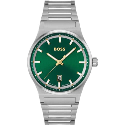 Orologio Uomo Hugo Boss Candor 1514079 Orologio da uomo Hugo Boss della collezione Candor. Il movimento dell’orologio è al quarzo con funzione datario. La cassa è in acciaio, diametro 41 mm. Il bracciale è in acciaio. Il quadrante è di colore verde. La resistenza all’acqua è di 5 ATM / 50 metri. Referenza: 1514079 Articolo spedito con garanzia ed astuccio Hugo Boss Dal design elegante e contemporaneo, questo orologio Hugo Boss incarna lo stile e l’affidabilità. Il suo quadrante verde intenso cattura lo sguardo, mentre il bracciale in acciaio dona un tocco di classe senza tempo. Perfetto per ogni occasione, dagli incontri di lavoro alle serate più esclusive, è l’accessorio ideale per chi ama l’eleganza discreta con un carattere deciso.