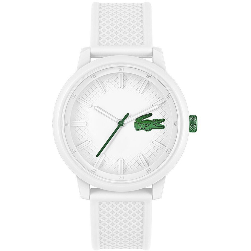 Orologio Uomo Lacoste 12.12 2011315 Orologio da uomo Lacoste della collezione 12.12. Il movimento dell’orologio è al quarzo. La cassa è in policarbonato di colore bianco, diametro 48 mm. Il cinturino è in silicone di colore bianco. Il quadrante è di colore bianco. La resistenza all’acqua è di 5 atm / 50 metri. Referenza: 2011315 Articolo spedito con astuccio e garanzia Lacoste L’iconico Lacoste.12.12. si rinnova con un design moderno. Sportivo, pratico e ideato per chi non ha tempo da perdere.