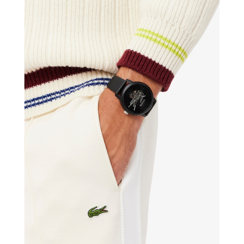Orologio Uomo Lacoste 12.12 2011383 Orologio da uomo Lacoste della collezione 12.12. Il movimento dell’orologio è meccanico a carica automatica. La cassa è in acciaio IP nero, diametro 44 mm. Il cinturino è in pelle di colore nero. Il quadrante è di colore nero. La resistenza all’acqua è di 5 atm / 50 metri. Referenza: 2011383 Articolo spedito con astuccio e garanzia Lacoste Reinterpretazione dell’iconico bestseller con movimento automatico, l’orologio automatico Lacoste.12.12 presenta un cinturino in pelle con una delicata texture trapuntata. Un’apertura a forma di coccodrillo nel quadrante rivela il movimento, aggiungendo un tocco sofisticato.
