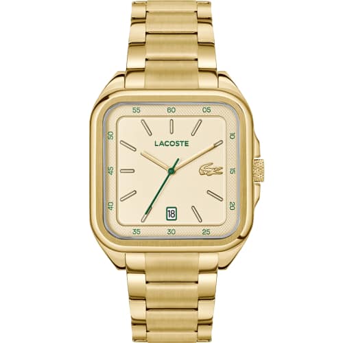 Orologio Uomo Lacoste Up 2011462 Orologio da uomo Lacoste della collezione Up. Il movimento dell’orologio è al quarzo con funzioni datario. La cassa è in acciaio PVD oro, dimensioni 39 x 32 mm. Il bracciale è in acciaio PVD oro. Il quadrante è di colore sunray. La resistenza all’acqua è di 5 atm / 50 metri. Referenza: 2011462 Articolo spedito con astuccio e garanzia Lacoste