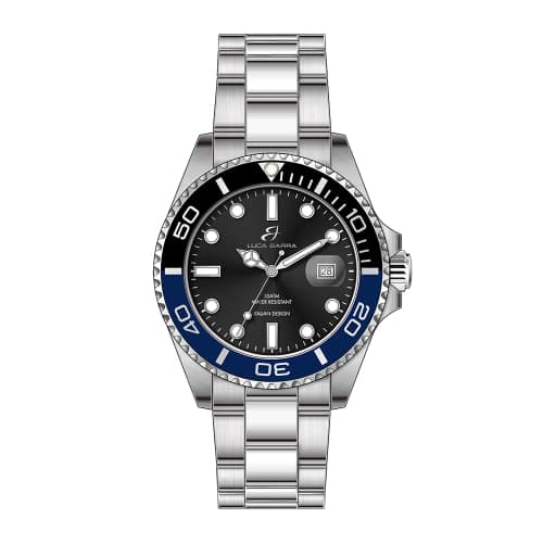 Orologio Uomo Luca Barra BU105 Orologio uomo con cassa in acciaio ghiera nera e blu quadrante nero con datario bracciale in acciaio dettagli silver Diametro cassa: 40 mm Movimento Miyota, 10 ATM Corona a vite. Referenza: BU105 Articolo spedito con astuccio e garanzia Luca Barra