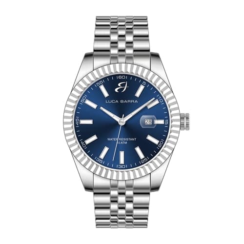 Orologio Uomo Luca Barra BU125 Orologio Uomo in acciaio con ghiera zigrinata e quadrante blu. Diametro cassa: 41 mm. Movimento Miyota, 10 ATM. Solo Tempo. La ghiera zigrinata aggiunge un tocco di raffinatezza e personalità, mentre il quadrante blu offre un’eleganza vibrante e sofisticata. L’acciaio della cassa e del bracciale conferisce robustezza e durabilità, adatto a qualsiasi situazione. Dotato del movimento Miyota, rinomato per la sua precisione e affidabilità, questo orologio offre un’esperienza di misurazione del tempo impeccabile. Referenza: BU125 Articolo spedito con garanzia ed astuccio originale Luca Barra