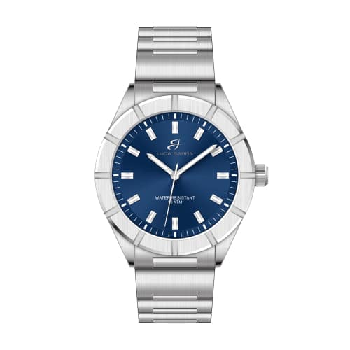 Orologio Uomo Luca Barra BU141 Orologio Uomo in acciaio con quadrante blu. Diametro cassa: 40 mm. Movimento Miyota, 10 ATM. Corona a vite. Solo Tempo. Aggiungi un tocco di stile e personalità al tuo look con questo orologio da uomo in acciaio inossidabile, caratterizzato da un affascinante quadrante blu. Questo orologio è l’accessorio ideale per l’uomo moderno che desidera combinare eleganza e funzionalità, perfetto per ogni occasione, dal lavoro a un’uscita serale. Referenza: BU141 Articolo spedito con garanzia ed astuccio originale Luca Barra