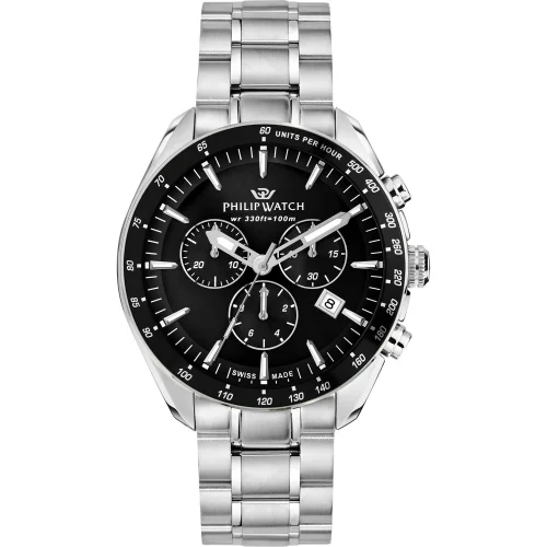 Orologio Uomo Philip Watch Blaze R8273995018 Orologio da uomo Philip Watch della collezione Blaze. Il movimento dell’orologio è al quarzo Swiss Made con funzioni cronografo e datario. La cassa dell’orologio è in acciaio, diametro 42 mm. Il bracciale dell’orologio è in acciaio. Il quadrante è di colore nero. La resistenza all’acqua è di 10 atm / 100 metri. Referenza: R8273995018 Articolo spedito con garanzia ed astuccio originale Philip Watch