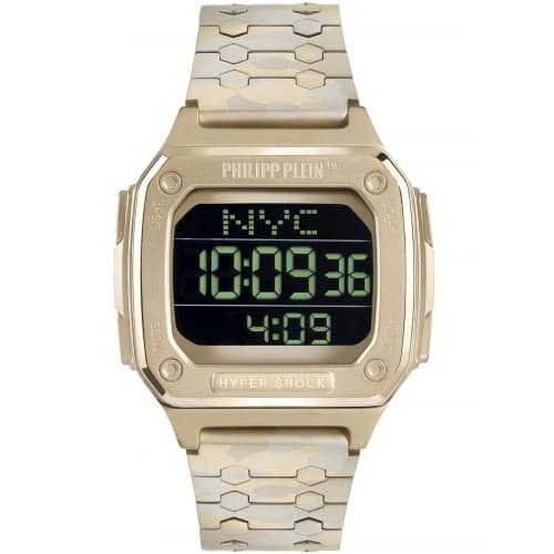 Orologio Uomo Philipp Plein Hyper $Hock PWHAA1021 Orologio da uomo Philipp Plein della collezione Hyper $Hock. Il movimento dell’orologio è al quarzo. La cassa dell’orologio del diametro di 44 mm è in acciaio di colore oro. Il bracciale è realizzato in acciaio di colore marrone camo. Il quadrante è di colore nero display. La resistenza all’acqua è di 5 ATM / 50 metri. Referenza: PWHAA1021 Articolo spedito con astuccio originale