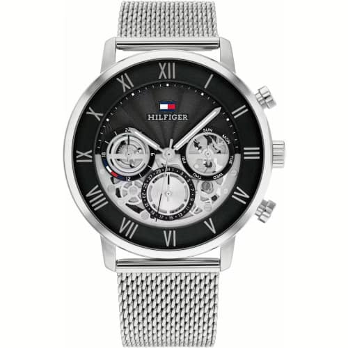Orologio Uomo Tommy Hilfiger Legend 1710708 Orologio da uomo Tommy Hilfiger della collezione Legend. Il movimento dell’orologio è al quarzo con funzioni datario, indicazione del giorno e delle 24h giornaliere. La cassa è in acciaio, diametro 44 mm. Il bracciale è in acciaio. Il quadrante è di colore nero. La resistenza all’acqua è di 5 ATM / 50 metri. Referenza: 1710708 Articolo spedito con astuccio e garanzia Tommy Hilfiger