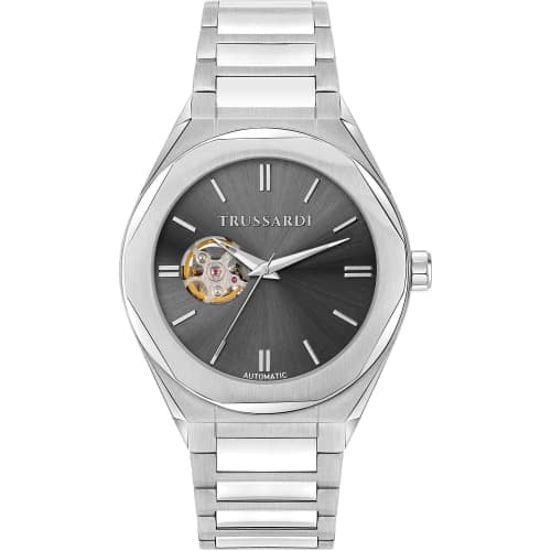 Orologio Uomo Trussardi Big Wrist R2423156002 Orologio da uomo Trussardi della collezione Big Wrist. Il movimento dell’orologio è meccanico a carica automatica. La cassa è in acciaio, diametro 42 mm. Il bracciale è in acciaio. Il quadrante è di colore grigio. La resistenza all’acqua è di 5 ATM / 50 metri. Referenza: R2423156002 Articolo spedito con astuccio e garanzia Trussardi