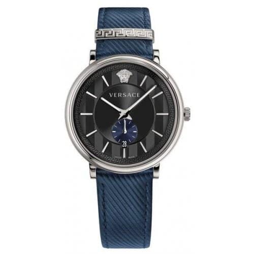 Orologio Versace Uomo V-Circle VEBQ01018 Orologio da uomo Versace della collezione V-Circle. Il movimento dell’orologio è al quarzo Swiss Made con funzione datario. La cassa del diametro di 42 mm è realizzata in acciaio. Il cinturino è realizzato in pelle di colore blu. Il quadrante è di colore blu. Il vetro dell’orologio è in zaffiro antigraffio e antiriflesso. La resistenza all’acqua è di 5 atm / 50 metri. Referenza : VEBQ01018 Articolo spedito con astuccio originale Versace