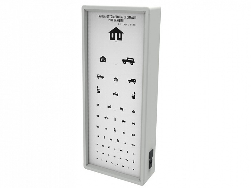 Grafico Optometrico Perdiatricolt;brgt;lt;brgt;- Versione luminosalt;brgt;- Distanza di lettura: 3 metrilt;brgt;lt;brgt;Gli ottotipi luminosi GIMA sono progettati conformemente alle raccomandazioni cliniche con una luce bianchissima per fornire una lettura accurata e precisa di qualsiasi dettaglio.lt;brgt;lt;brgt;Schermo costruito in acrilico e nel rispetto delle norme di sicurezza (fusibili, presa Shuko, luce verde On/Off,…).lt;brgt;lt;brgt;Prodotto in Italia.lt;brgt;lt;brgt;1 pz.
