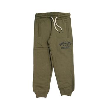 Pantalone della tuta da bambino in felpa tinta unita con stampa sulla coscia, tasche aperte, coulisse in vita e polsini elasticizzati sul fondo.Taglie: 6, 8, 10, 12, 14 anniColori: Verde militare, Nero