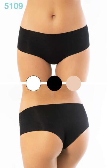 Panty donna in cotone elasticizzato con bordi e sgambature taglio laser.Non segna sotto gli abiti.Taglie: 2/S – 3/M – 4/L – 5/XL