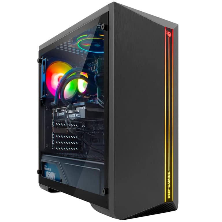 Godetevi i vostri giochi come mai prima d’ora con la nuova serie DeepGaming Venom. Disponibile con processori Intel Core i7-10700F e Intel Core i9-10900F di decima generazione.16 o 32 GB di RAM a 3200mhz (espandibile fino a 64 GB), veloce SSD NVMe da 500 GB o 1 TB e disco rigido opzionale da 2 TB e scheda grafica Nvidia GTX1650GB DDR5 da 4 GB. Connettività di alto livello con 6 porte USB3.0 (2 sulla parte anteriore) + 2 porte USB2.0, rete cablata gigabit ethernet + WiFi AC1200 a 2,4Ghz e 5Ghz. – Prodotto nuovo