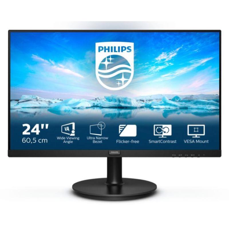 Philips 241v8l monitor 24“ led va full hd, 1920 x 1080, gaming adaptive sync, 75 hz, hdmi, vga, attacco vesa, nero