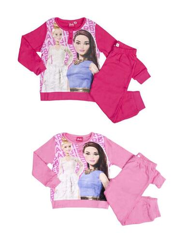 Pigiama da bambina a serafino in jersey di CALDO cotone (medio peso) con stampa Barbie e pantalone lungo con polsini.Taglie: 3 – 4 – 5 – 6 – 7 – 8 – 9/10 ANNI