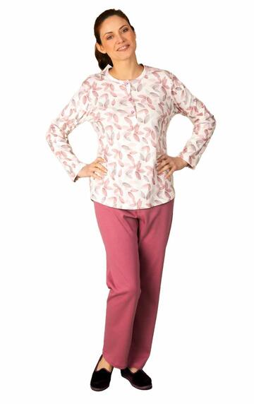 Pigiama donna a serafino in jersey di cotone caldo (medio peso) fantasia e pantalone lungo senza polsini. Made in Italy.Taglie: 3/S – 4/M – 5/L – 6/XL – 7/XXL – 8/XXXL