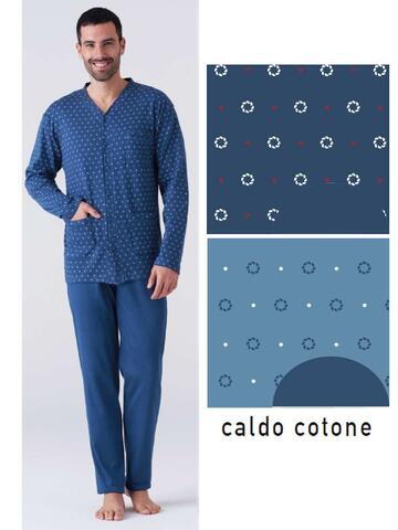 Pigiama uomo con giacca aperta in jersey di cotone caldo (medio peso) fantasia cravatta con tasche e pantalone senza polsini.Taglie: 48/M – 50/L – 52/XL – 54/XXL