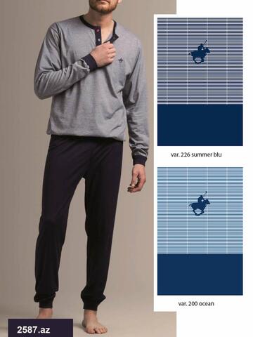 Pigiama uomo a serafino in jersey di cotone millerighe con fascione, stemma e polsini.Prodotto di qualità. Made in Italy.Taglie:4=48/M5=50=L6=52/XL7=54/XXL