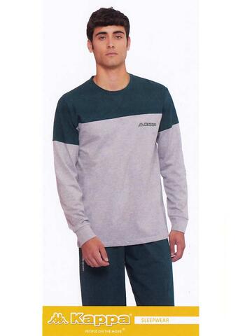 Pigiama uomo girocollo in jersey di cotone caldo (medio peso) con logo ricamato e pantalone con polsini.Taglie: 48/M – 50/L – 52/XL – 54/XXL