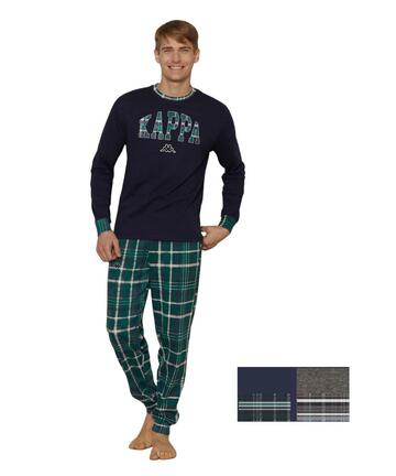 Pigiama uomo girocollo in jersey di cotone caldo (medio peso) con stampa logo e pantalone scozzese con polsini.Composizione: melange 60% COTONE 40% POLIESTERETaglie: 48/M – 50/L – 52/XL – 54/XXLLINEA AUTUNNO – INVERNO