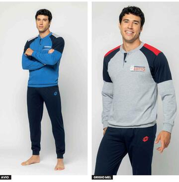 Pigiama uomo a serafino in jersey di cotone con stampa logo, bande colorate e pantalone con polsini.Taglie: 48/M – 50/L – 52/XL – 54/XXL