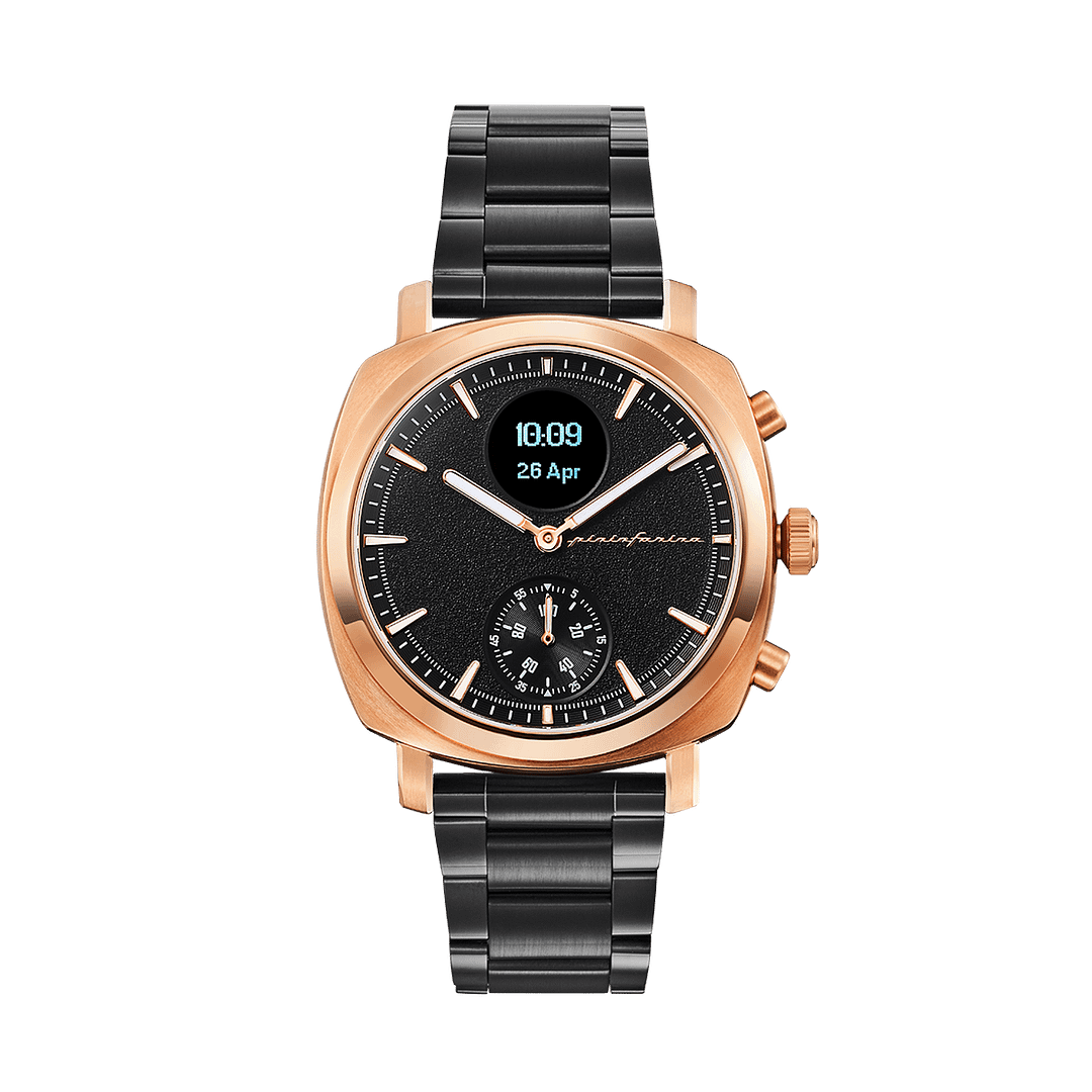 Pininfarina SENSO – Rose gold case, black dial and black strap – Dark grey metal band