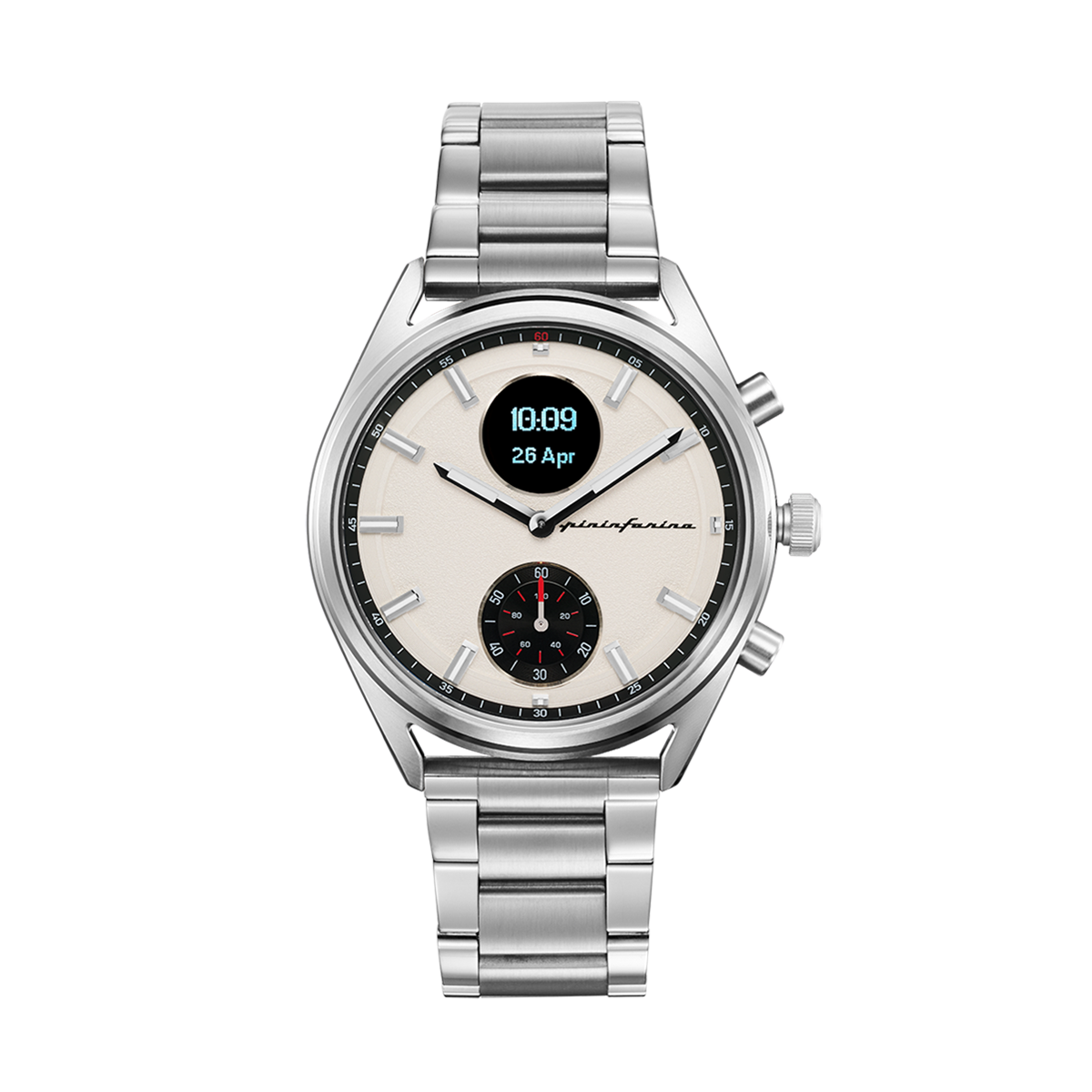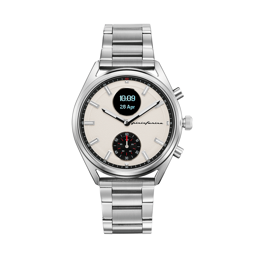 Pininfarina SINTESI – Silver case, white dial and beige strap – Steel metal band