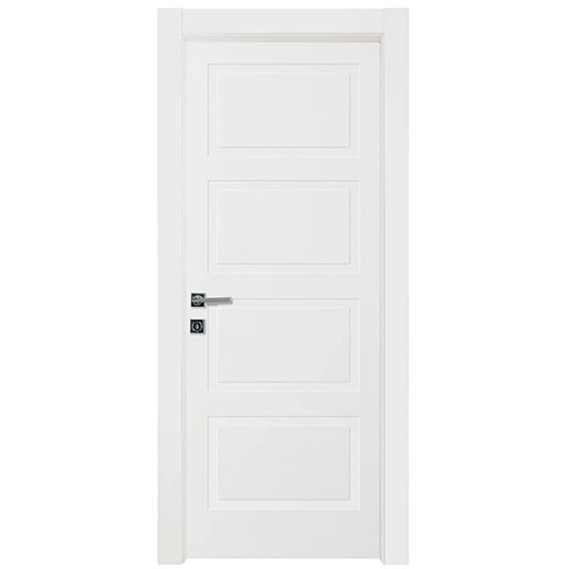 Porta a battente in legno Nusco serie Quadra a 4 pannelli dal design minimal, una scelta ideale per arredi moderni. La porta viene fornita senza maniglia. Questa porta da interni a 4 pannelli fa parte della nuova collezione Quadra Nusco, un soluzione dal design contemporaneo adatta ad ogni ambiente moderno. Le finiture laccate colore Bianco puro RAL 9003 si abbinano alla linearità degli elementi, per un design minimal ma deciso. Elegante elemento d’arredo e design , si adatta con stile e versatilità agli ambienti domestici. La porta viene fornita di serie con telaio squadrato in listellare di abete , anta senza battuta, serratura magnetica e 3 cerniere a scomparsa regolabili. Telaio quadrato Telaio quadrato in listellare di abete e coprifili LSB piatti. Cerniere a scomparsa Le 3 cerniere a scomparsa regolabili contribuiscono ad un design minimal e garantiscono la massima solidità. I vantaggi delle porte a serratura magnetica Le porte con serrature magnetiche portano con se svariati vantaggi. la principale è sicuramente la semplicità di utilizzo: il principio di funzionamento magnetico assicura la chiusura semplice della serratura senza utilizzo di chiavi . Inoltre, essendo il magnete rivestito da materiale plastico, una maggiore silenziosità è garantita rispetto alle versioni meccaniche per porte interne, perché l’attrito tra i componenti è ridotto. Ed infine, c’è l’aspetto estetico, le serrature magnetiche hanno lo scrocco che non fuoriesce dalla serratura quando la porta è aperta . Questo favorisce la creazione di un design minimale e dalle linee pulite. Dati Tecnici Serie Quadra Materiale Legno N° Pannelli 4 Telaio Quadrato Serratura Magnetica Tipo cerniere A scomparsa N° Cerniere 3 Maniglia Non compresa Colore Bianco puro RAL 9003 Perchè scegliere le porte e gli infissi Nusco Scegliendo una porta Nusco, oltre all’assoluta certezza di un prodotto di elevata qualità, si avrà a disposizione una grande varietà di modelli in modo da soddisfare completamente le richieste di chiunque punti a creare ambienti emozionanti, confortevoli e accoglienti per migliorare la qualità della vita . Grazie a questo approccio sempre attento alla ricerca dei migliori materiali , alla cura dei dettagli e alle scelte di design, Nusco offre un catalogo di porte che copre ogni possibile esigenza. Ogni porta Nusco può essere realizzata su misura per le diverse esigenze di arredamento. Contattaci per un preventivo personalizzato.