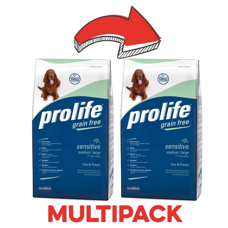 Prolife Grain Free Medium Large Pesce & Patate Peso Confezione 2 Kg – KIT 2x