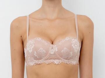 Reggiseno a fascia balconcino Lormar Deluxe, tutto in pizzo con ferretto e coppe graduate e spalline staccabili.