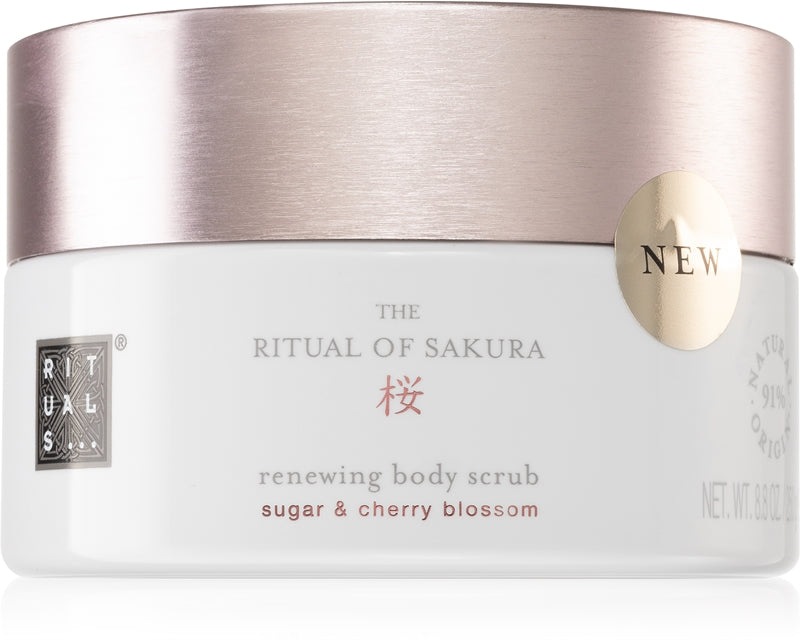 Pelle liscia, levigata e nutrita in un solo passaggio| Rituals The Ritual Of Sakura è uno scrub emolliente corpo contenente un’elevata percentuale di ingredienti naturali che rende la pelle vitale, rigenerata e naturalmente radiosa. La sua composizione combina cristalli di zucchero e oli nutrienti per rimuovere le cellule morte della pelle e favorirne il rinnovamento, nutrendo la pelle per farla risplendere. Durante l’applicazione, il profumo del latte di riso e delle ciliegie giapponesi coccolerà i tuoi sensi.