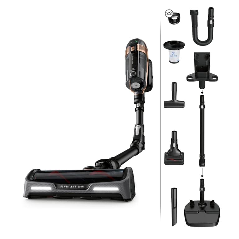 Rowenta X-Force RH99F1. Tipo di pulizia: Secco, Filtro aria hoover: HEPA, Tecnologia di aspirazione: Ciclonico. Tipo di contenitore della polvere: Senza sacchetto, Colore del prodotto: Nero, Grigio, Capacità polvere: 0,9 L. Alimentazione: Batteria, Autonomia: 80 min, Tempo di ricarica: 3 h. Peso: 3,2 kg, Larghezza: 28 mm, Profondità: 25 mm. Larghezza confezione: 208 mm, Profondità confezione: 762 mm, Altezza confezione: 363 mm. – Prodotto nuovo