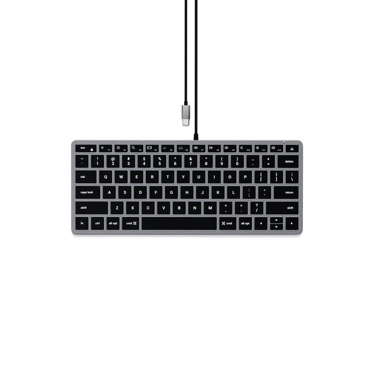 Satechi Slim W1. Fattore di forma della tastiera: Mini. Stile tastiera: Dritta. Tecnologia di connettività: Cablato, Interfaccia dispositivo: USB, Layout tastiera: QWERTY, Utilizzo raccomandato: Ufficio. Colore del prodotto: Alluminio, Nero – Prodotto nuovo