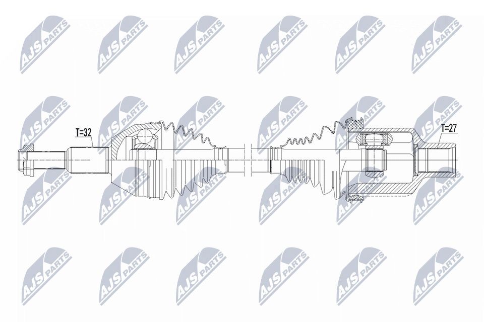 Lato montaggio: Assale anteriore Dx; Modalità di trasmissione: Trasmissione automatica; Dentatura esterna lato differenziale: 27; Dentatura esterna lato ruota: 32; Lunghezza [mm]: 585; Numero di fabbricazione: NPW-CH-177